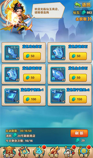 2、仙玉可以在“仙玉商店”中购买装备升品用的图纸和宝石;
